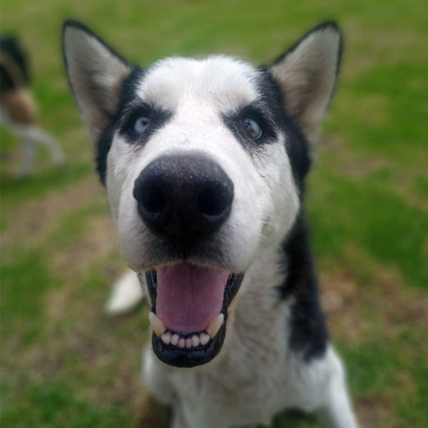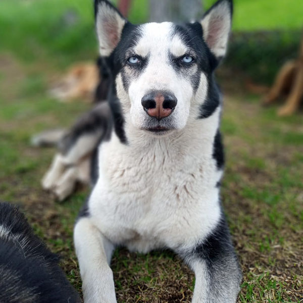 Un husky siberiano abandonado e igualmente con una historia que solo el conoce.