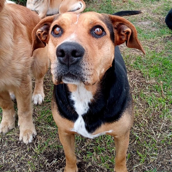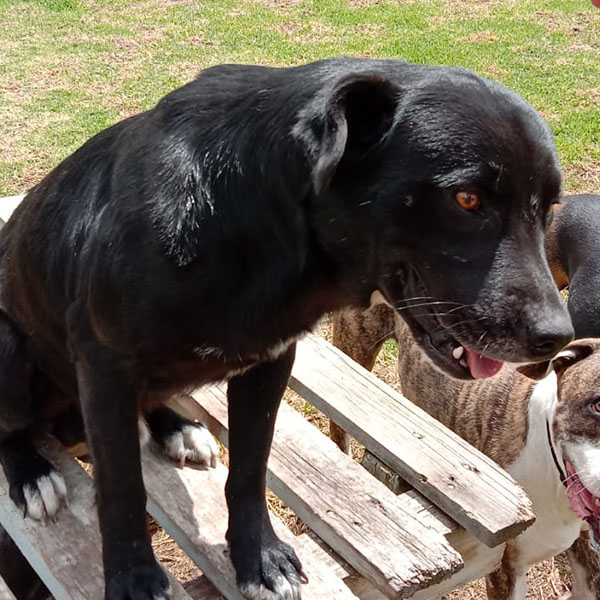 Este es un peludito que tuvo un poco más de suerte. Es hijo de Loca, fue adoptado por una familia que no fue responsable, sufrió maltrato, nada de amor y comida. Entonces lo recogimos y decidimos quedarnos con él.