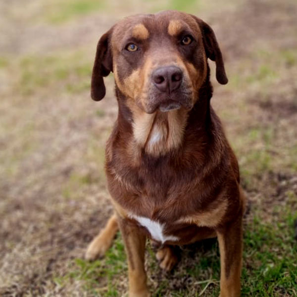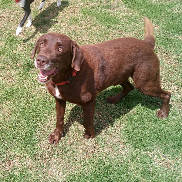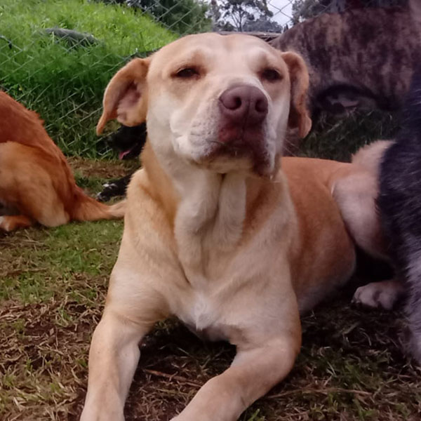 Un labrador chocolate de bastante edad. Fue llevado junto con su hijo a un sitio muy lejano de su vivienda. El hijo parece que murió y HEMDAL regresó a su casa para sorpresa de sus dueños, en condiciones deplorables. Lo aceptaron, pero lo dejaron en una terraza al sol y al agua sin comida. Hasta que fue rescatado por nuestro colegio. Dándole así una nueva oportunidad.