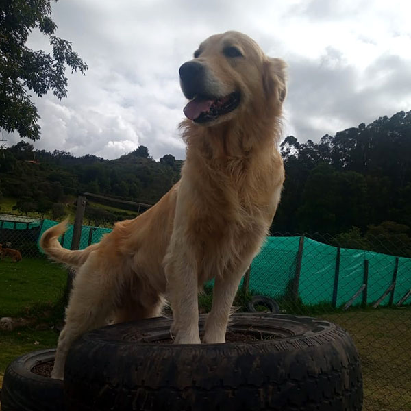 Es un Golden retriever hermoso que fue abandonado un 21 de octubre, lo bajaron de una camioneta, aún tenía placa de identificación, se llamó al número que registraba y contestaron que no lo conocían. Pues la decisión fue adoptarlo no tuvimos corazón para dejarlo en la calle.